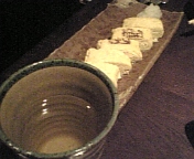 本日のメインです。梅酒お湯割りと玉子焼き。んまい・・・。舞茸とエリンギの天麩羅もんまい!あ、馬刺しがきたー(´ω`*)