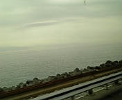 もう静岡です。海沿い走ってるよー。天気はイマイチだけど波は穏やか。