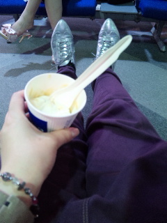 空港で搭乗待ち中★お土産もたんまり買いました。楽しかったなぁー。ライヴも楽しかったし、その後も楽しかったし、今日の観光も楽しかったし。作ったガラスが届くのも楽しみ♪ほんと最高だし最強でした。また来られるといいな。