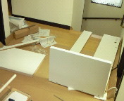 やばい、行き詰まった。1人じゃ無理だ!説明書見たら、『必ず2名以上で作業すること』と書いてあったよ。まさしく、おっしゃる通りです…。(土下座)ローテーブルはいけたからって調子に乗ってしまいました。誰か帰ってくるの待とう~(´・ω・`)